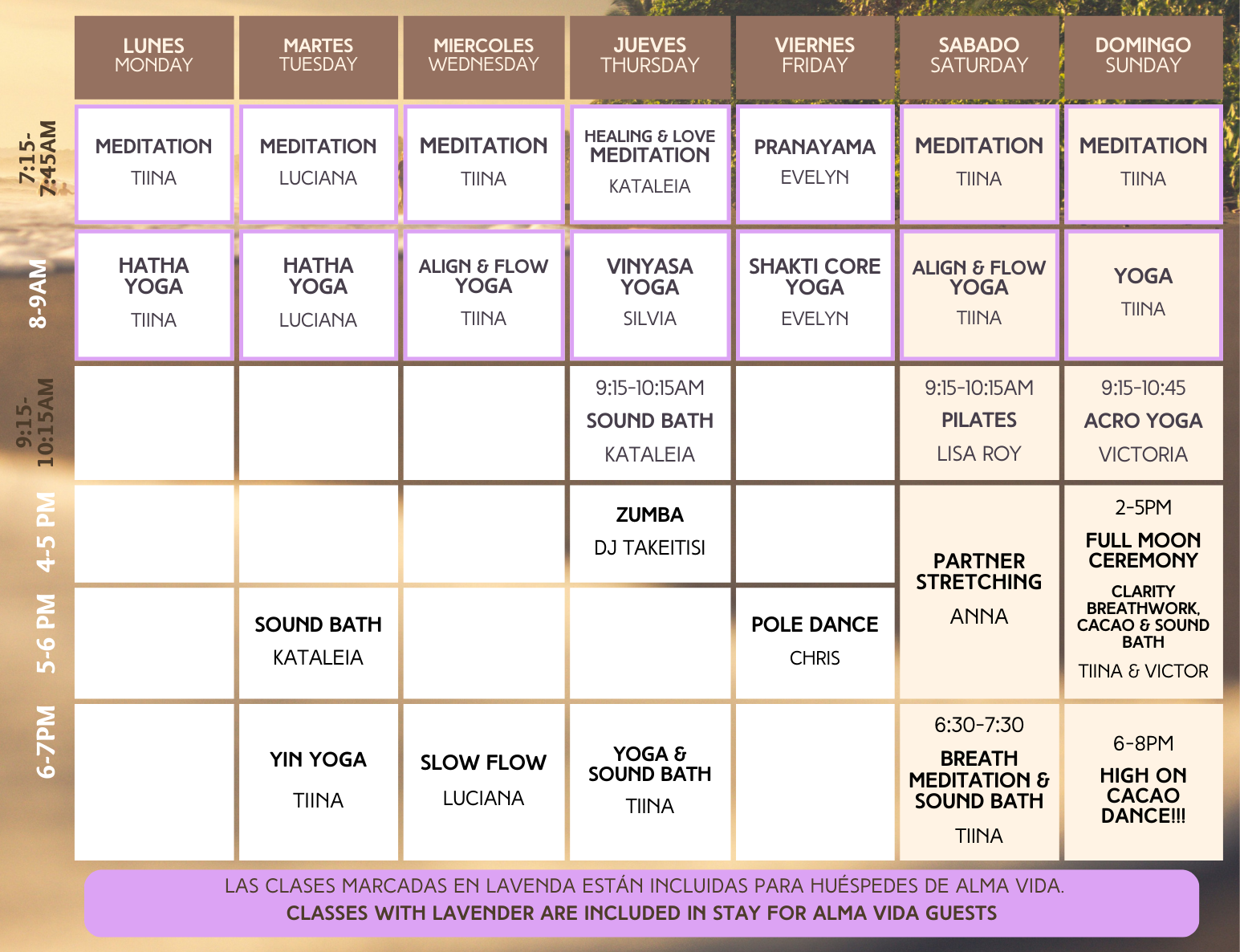 Special Prices for Locals & Residents, & Alma Vida guests.